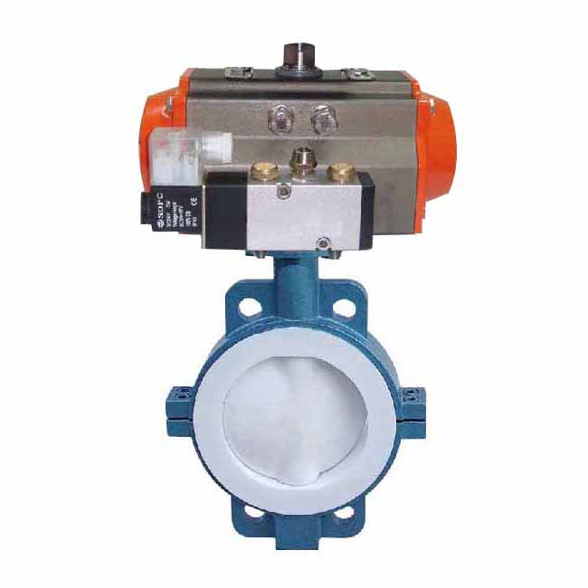 蝶閥是用閥桿一起轉動的蝶板作啟閉件,用以實現閥門的開啟,關閉與調節。襯里蝶閥是在過流部件、閥體、蝶板、閥桿上采用襯里技術襯里較厚的高分子材料,防腐蝕性能優良,可適用于任何濃度的酸、堿、鹽及氧化劑、還原劑、有機溶劑等介質,是化工、石油、醫藥、食品、鋼鐵冶煉、造紙、水電等系統的氣體、液體、半流體的管路和容器上作截流和調節設備使用的理想產品,并可取代閘閥、截止閥和其它類型的切斷、調節閥門。